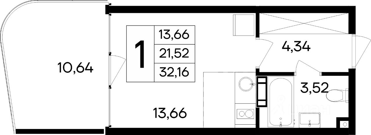 Общая площадь32,16 м2