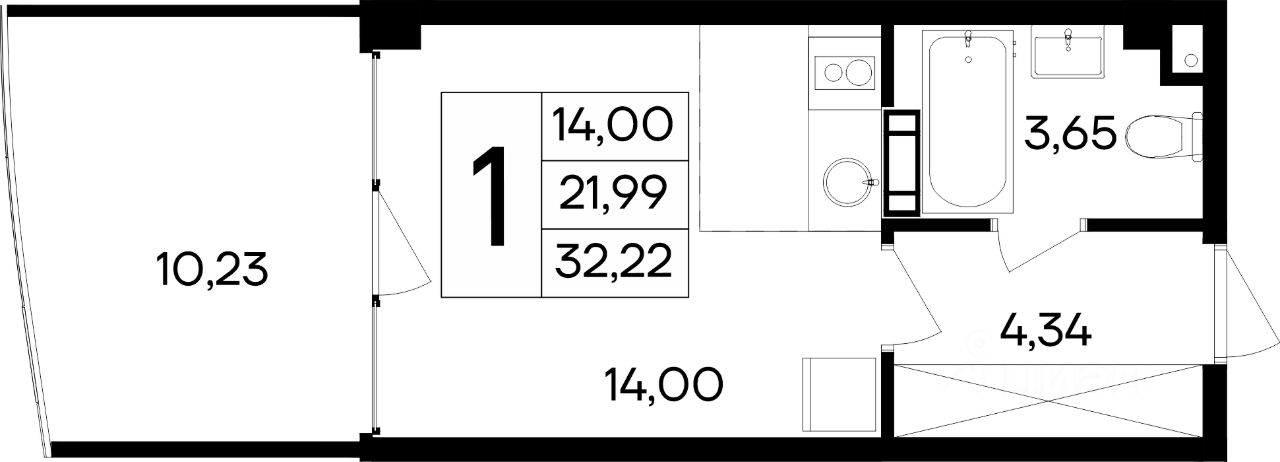Общая площадь32,22 м2