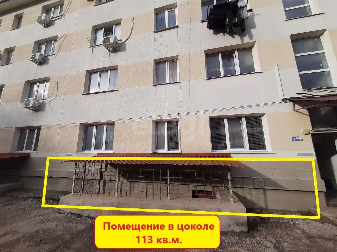 Продаётся помещение свободного назначения площадью 113 кв. м в цокольном этаже пятиэтажного блочного дома в городе Саки, Крым.