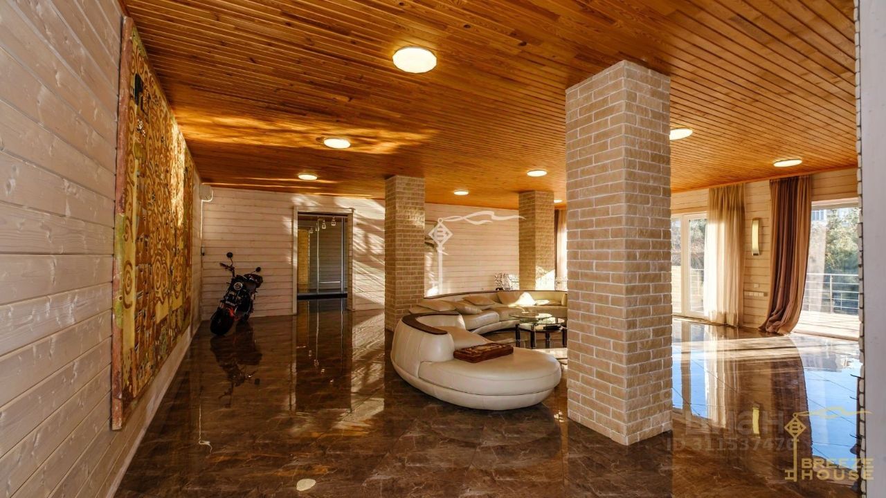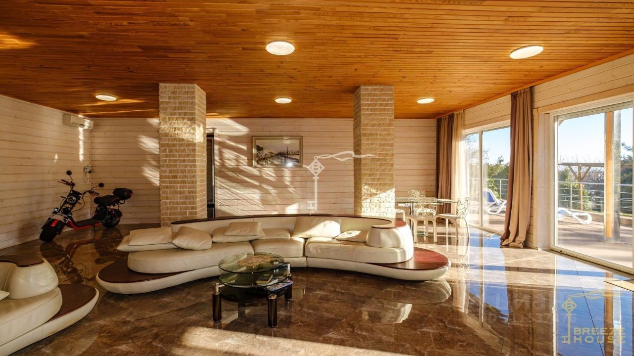 Возведен по монолитно-каркасной технологии, а второй и третий этаж - фасад из дерева.Установлены панорамные окна в пол которые обеспечивают внутреннее освещение и позволяют наслаждаться природным ландшафтом не выходя из дома. Потолки 2,8 метров позволят вам наслаждаться простором и воздухом.