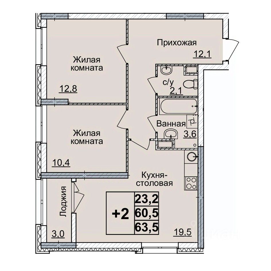 Общая площадь63 м2