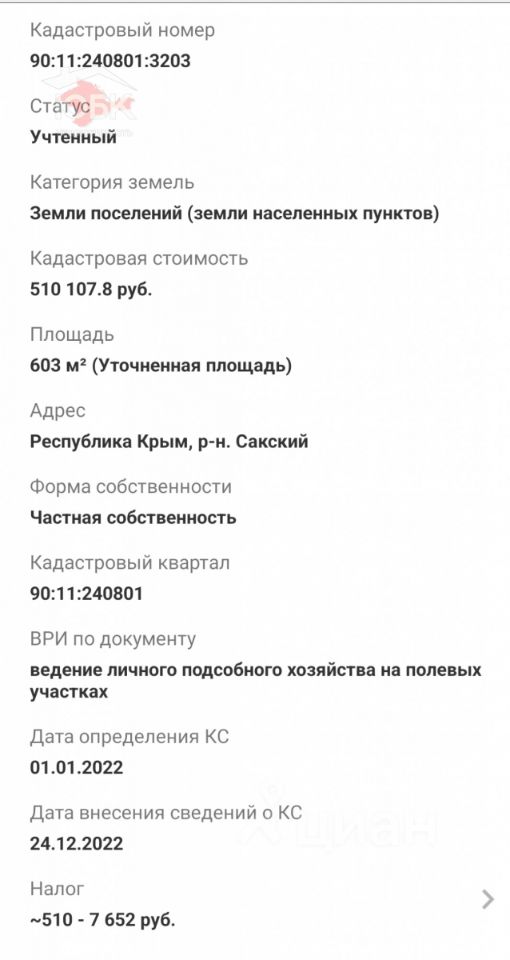 Кадастровый номер 90:11:240801:3203