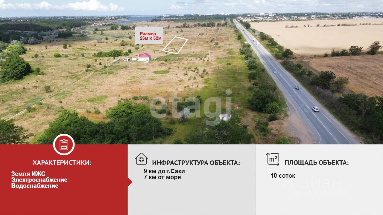 Продается земельный участок 10 соток в посёлке Чеботарка Сакского района, Крым. 9 км от города Саки. Вид разрешенного использования ИЖС (индивидуальное жилищное строительство)