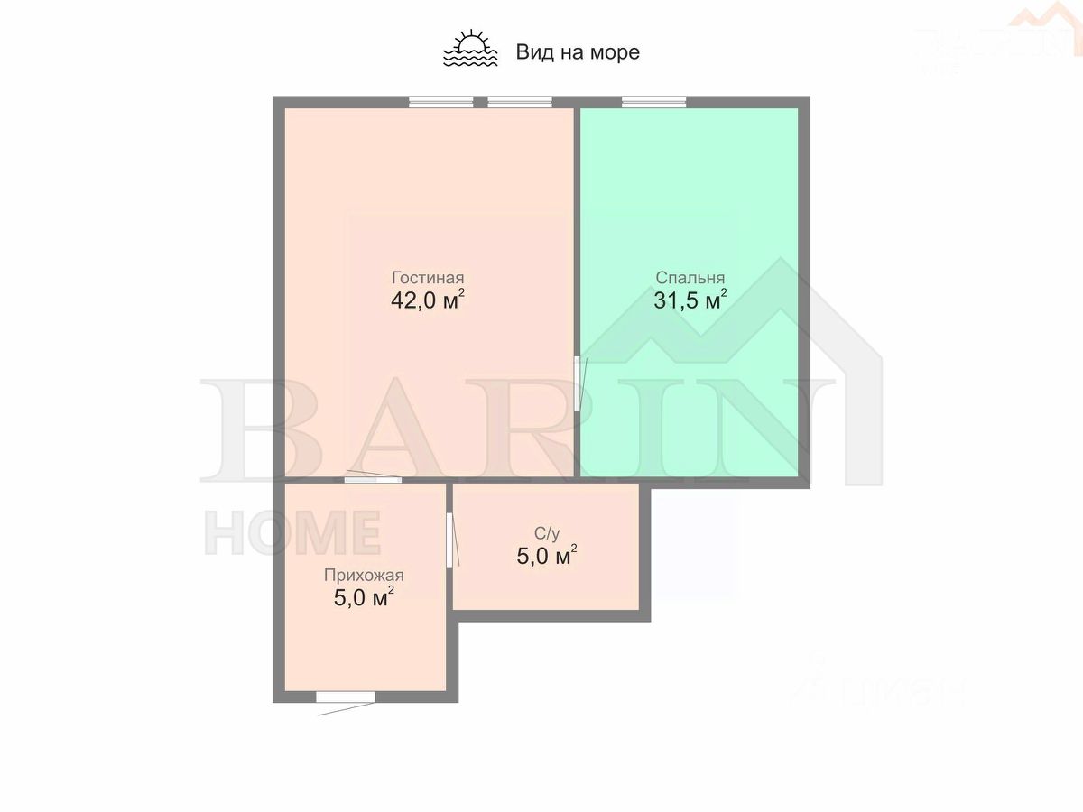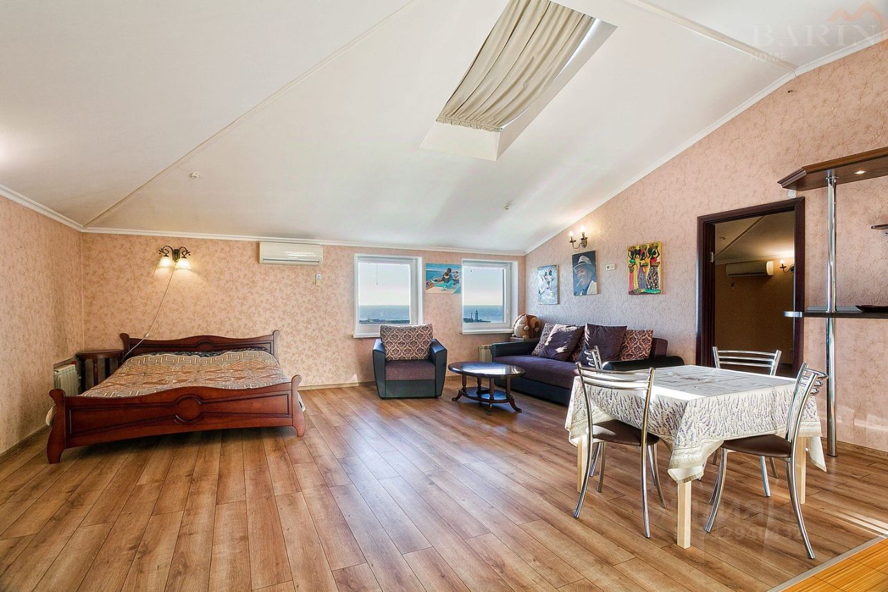 -Спальня 32,5 кв. м. -Кухня-гостиная 40 кв. м. -Санузел 5 кв. м. -Прихожая 6 кв. м. Преимущества: Прямой вид на море, Развитая внешняя инфраструктура, Полное уединением от городской суеты, 90м до Чёрного моря,
