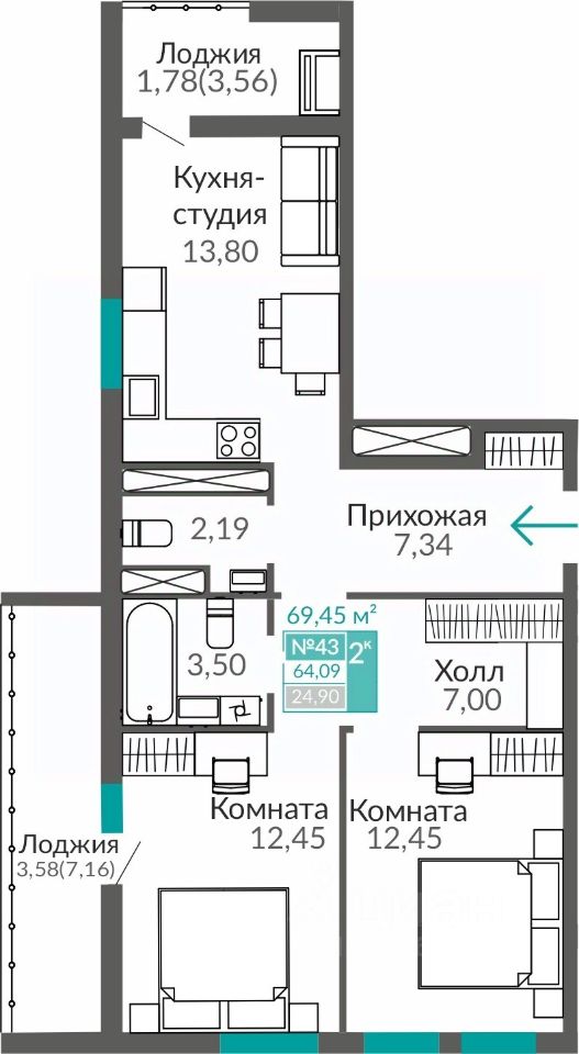 Продаётся 2-комнатная квартира в строящемся доме (Этап 16 (Секция В9)), срок сдачи: II-кв. 2027, общей площадью 64.09 кв.м., на 7 этаже. В жизни каждого наступает момент, когда мы понимаем, что выросли. Приходит время твердо идти вперед, расширять границы и открывать новые горизонты.
