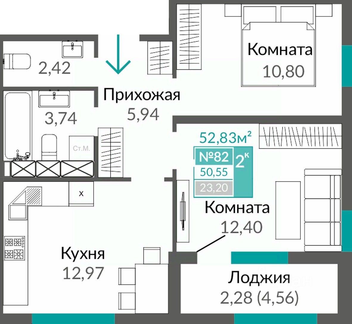 Продаётся 2-комнатная квартира в сданном доме (пр. Александра Суворова, 105 (этап 51)), срок сдачи: II-кв. 2024, общей площадью 50.55 кв.м., на 10 этаже. Новый жилой комплекс ''Тюльпаны'' от застройщика ''Монолит'' расположен по адресу Республика Крым, Симферополь, Объездная дорога.