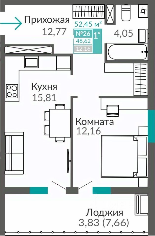 Продаётся 1-комнатная квартира в строящемся доме (Этап 16 (Секция В9)), срок сдачи: II-кв. 2027, общей площадью 48.62 кв.м., на 4 этаже. В жизни каждого наступает момент, когда мы понимаем, что выросли. Приходит время твердо идти вперед, расширять границы и открывать новые горизонты.
