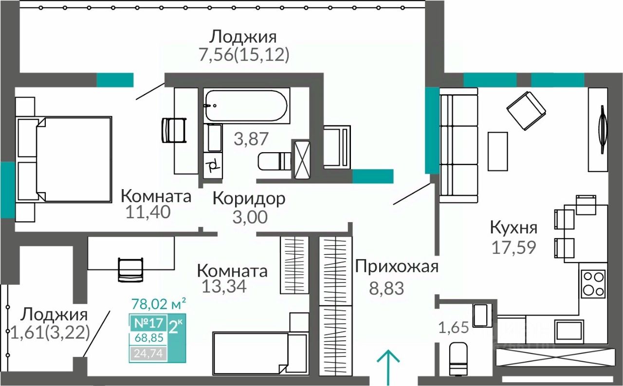 Продаётся 2-комнатная квартира в строящемся доме (Этап 16 (Секция В9)), срок сдачи: II-кв. 2027, общей площадью 68.85 кв.м., на 3 этаже. В жизни каждого наступает момент, когда мы понимаем, что выросли. Приходит время твердо идти вперед, расширять границы и открывать новые горизонты.
