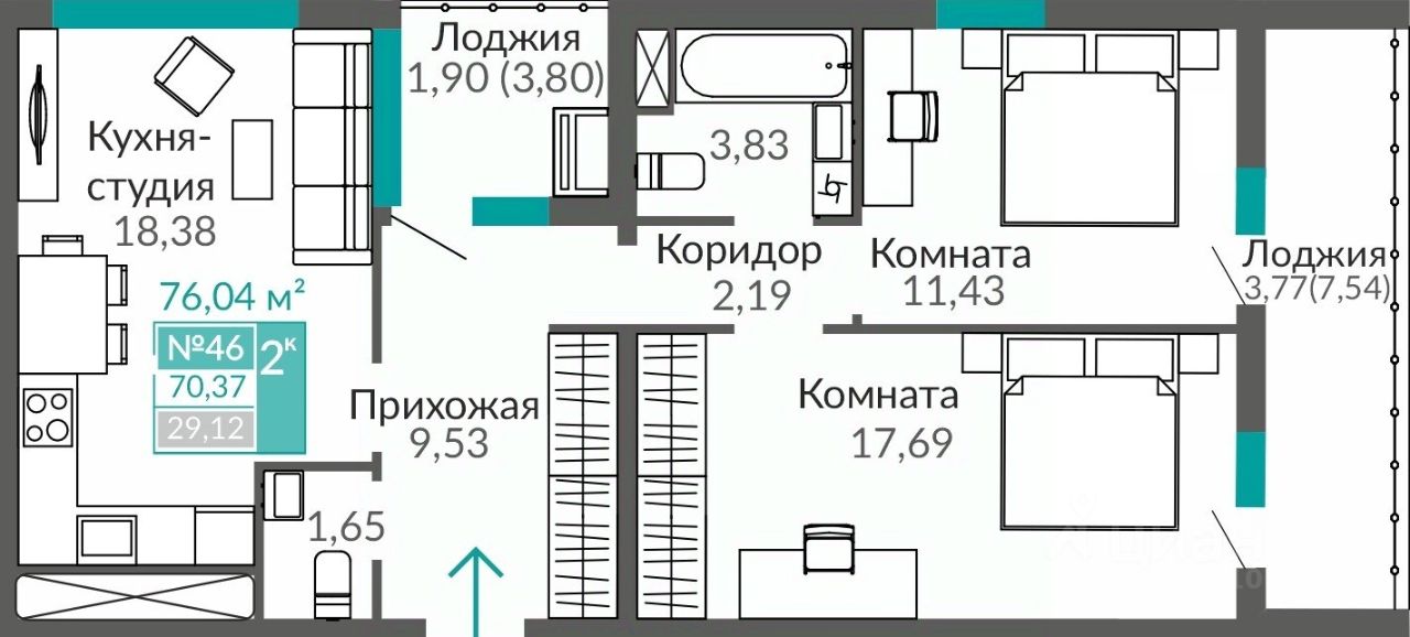 Продаётся 2-комнатная квартира в строящемся доме (Этап 16 (Секция В9)), срок сдачи: II-кв. 2027, общей площадью 70.37 кв.м., на 7 этаже. В жизни каждого наступает момент, когда мы понимаем, что выросли. Приходит время твердо идти вперед, расширять границы и открывать новые горизонты.