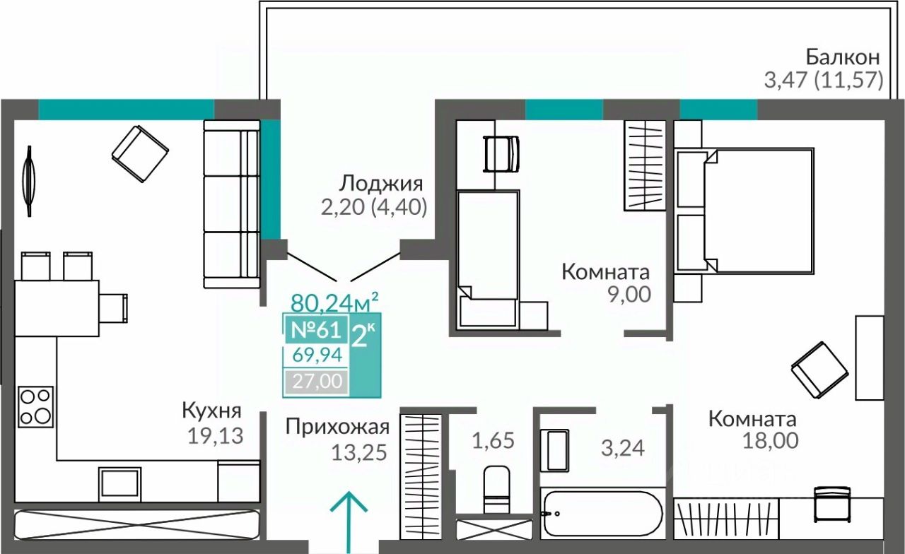 Общая площадь69,94 м2