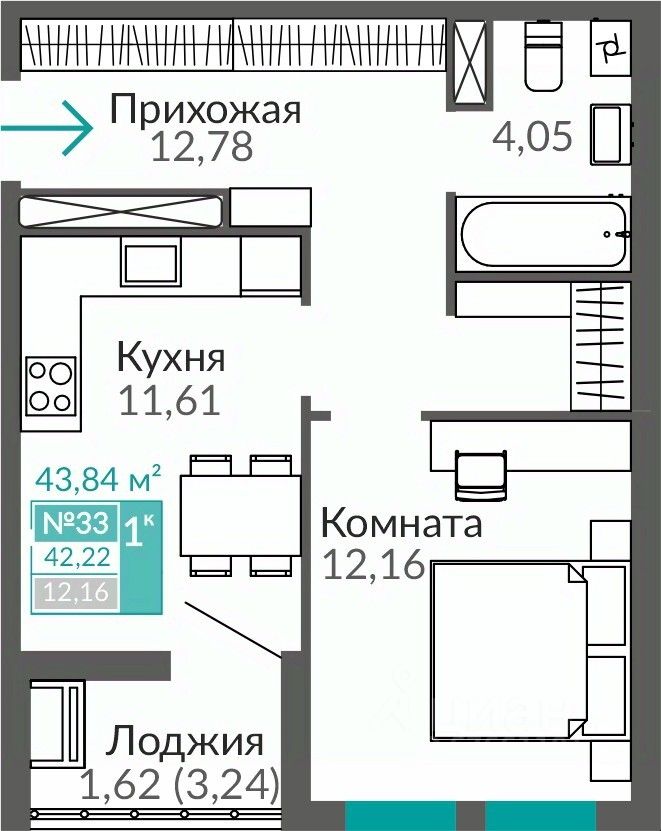Продаётся 1-комнатная квартира в строящемся доме (Этап 16 (Секция В9)), срок сдачи: II-кв. 2027, общей площадью 42.22 кв.м., на 5 этаже. В жизни каждого наступает момент, когда мы понимаем, что выросли. Приходит время твердо идти вперед, расширять границы и открывать новые горизонты.