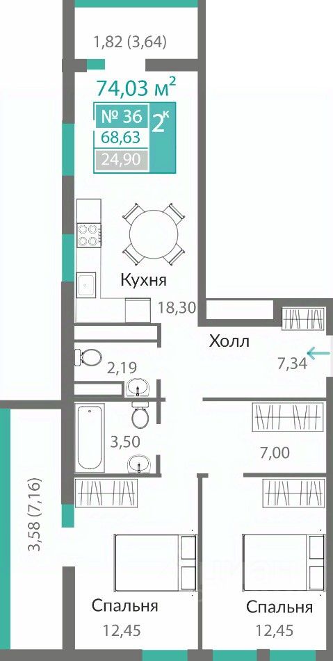 Продаётся 2-комнатная квартира в строящемся доме (13 этап (Секция Б8)), срок сдачи: I-кв. 2027, общей площадью 68.63 кв.м., на 6 этаже. ОТКРЫВАЕМ НОВЫЕ ГОРИЗОНТЫ