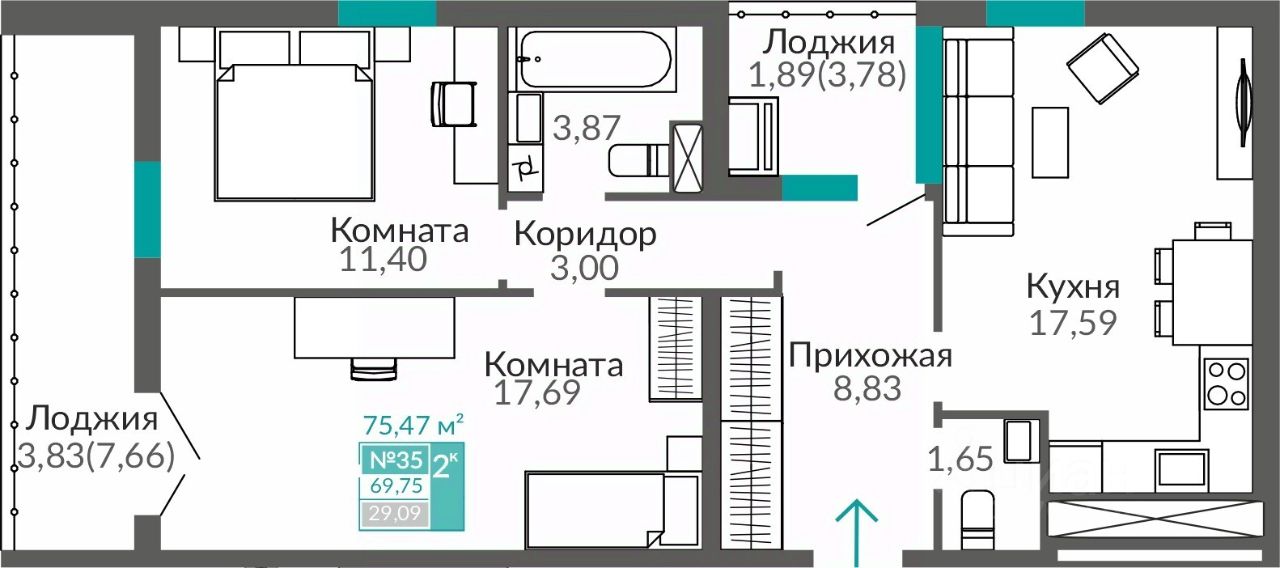 Продаётся 2-комнатная квартира в строящемся доме (Этап 16 (Секция В9)), срок сдачи: II-кв. 2027, общей площадью 69.75 кв.м., на 6 этаже. В жизни каждого наступает момент, когда мы понимаем, что выросли. Приходит время твердо идти вперед, расширять границы и открывать новые горизонты.