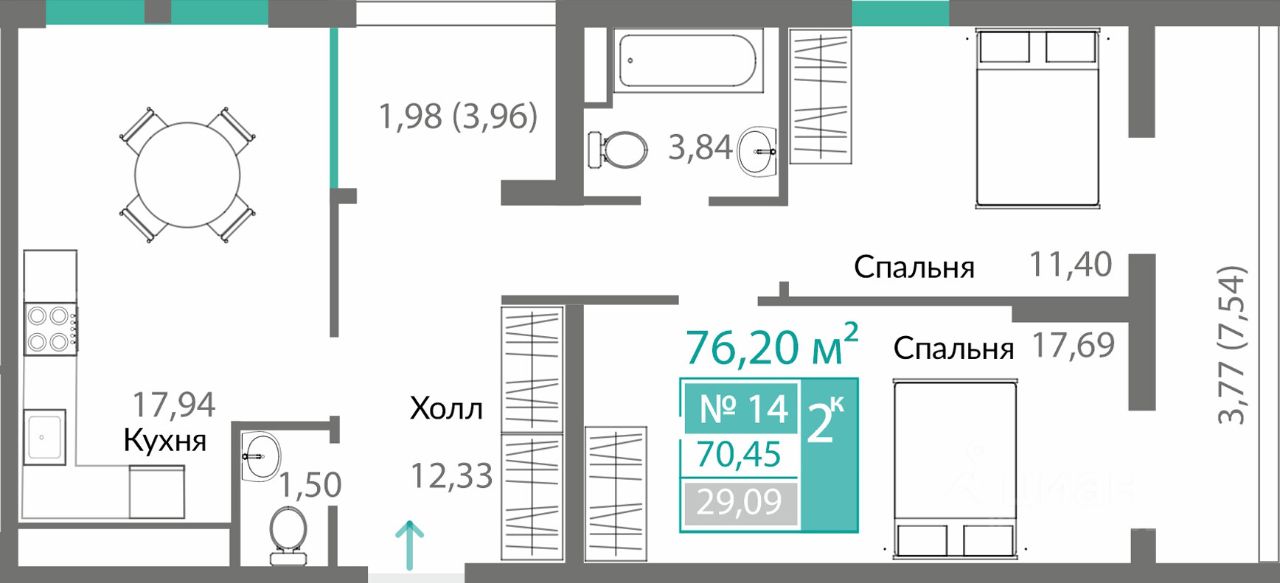 Продаётся 2-комнатная квартира в строящемся доме (9 этап (Секция Б9.2)), срок сдачи: I-кв. 2027, общей площадью 70.45 кв.м., на 3 этаже. ОТКРЫВАЕМ НОВЫЕ ГОРИЗОНТЫ