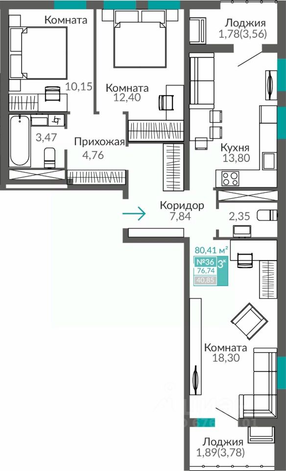 Продаётся 3-комнатная квартира в строящемся доме (Этап 16 (Секция В9)), срок сдачи: II-кв. 2027, общей площадью 76.74 кв.м., на 7 этаже. В жизни каждого наступает момент, когда мы понимаем, что выросли. Приходит время твердо идти вперед, расширять границы и открывать новые горизонты.