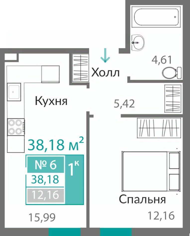 Продаётся 1-комнатная квартира в строящемся доме (11 этап (Секция А8)), срок сдачи: I-кв. 2027, общей площадью 38.18 кв.м., на 1 этаже. ОТКРЫВАЕМ НОВЫЕ ГОРИЗОНТЫ