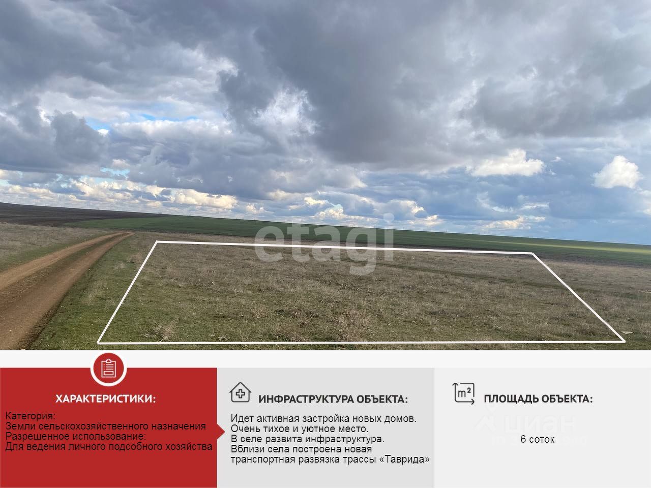 Прoдaм участок правильной, прямоугольной формы в с. Великое, которое находится непосредственной близости с г. Евпатория, площадью 6 сoтoк.