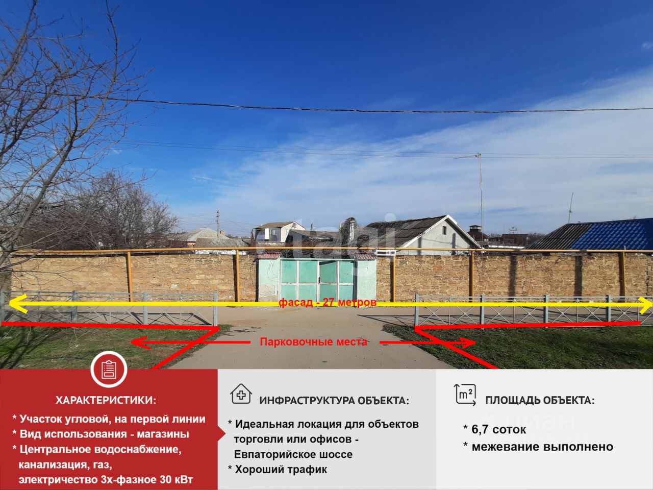 Площадь участка составляет 6,7 соток, а вид разрешенного использования — МАГАЗИНЫ, что открывает широкие возможности для реализации ваших идей. Участок имеет впечатляющий фасад в 27 метров, который выходит на активно загруженное Евпаторийское шоссе, обеспечивая постоянный поток потенциальных клиентов. С двух сторон участок также имеет выходы на примыкающие улицы, что создает дополнительные возможности для доступа и парковки.