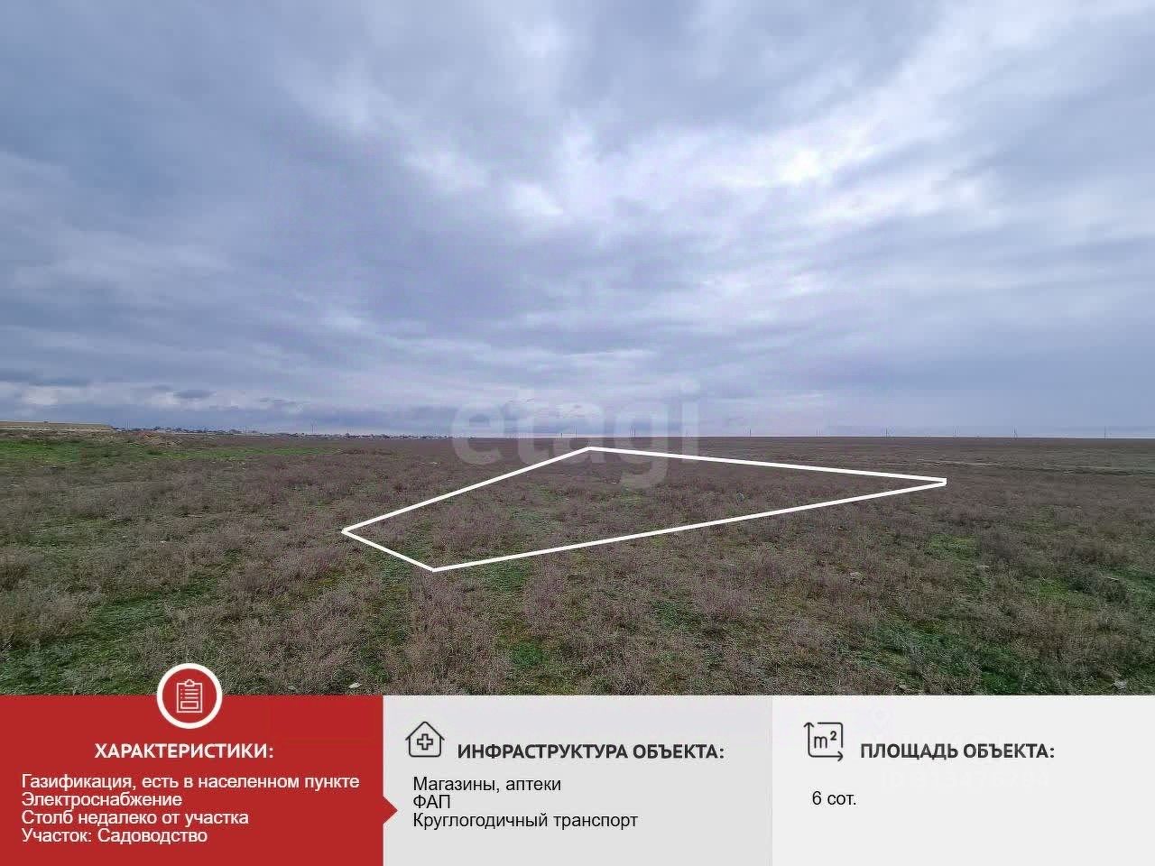 Продам земельный участок в Крыму! Земельный участок ровный, правильной прямоугольной формы Готов для строительства вашего дома. Почва плодородная, на этих полях выращивали сельхозкультуры. Площадь земельного участка 6,06 соток.