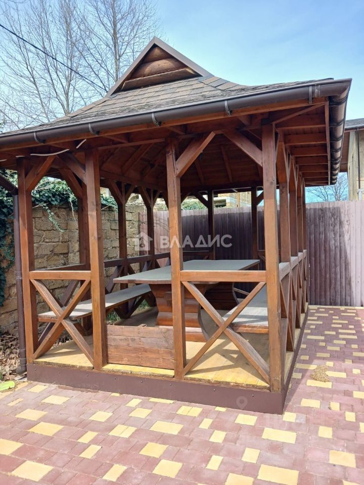 Территория облагорожена: есть красивые зелёные насаждения, беседка, бассейн и кухонная зона со всем необходимым оборудованием.