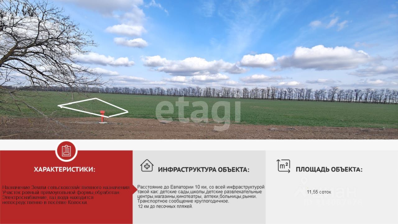 Продаётся участок 11,55 соток рядом с.Колоски , черноморское направление.