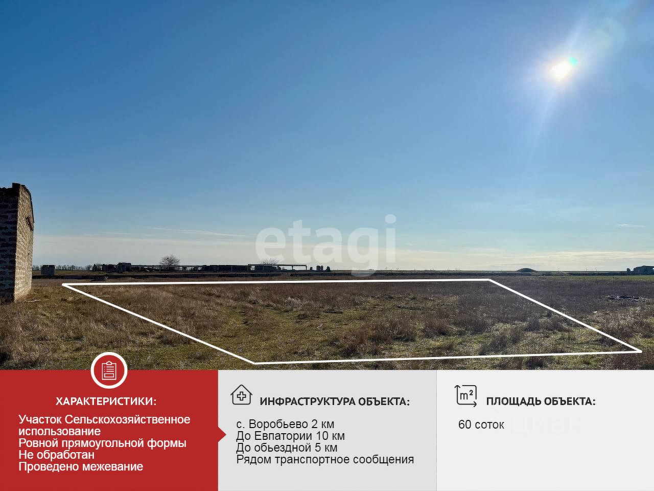 Продаётся участок 60 соток рядом с.Воробьевка , черноморское направление.