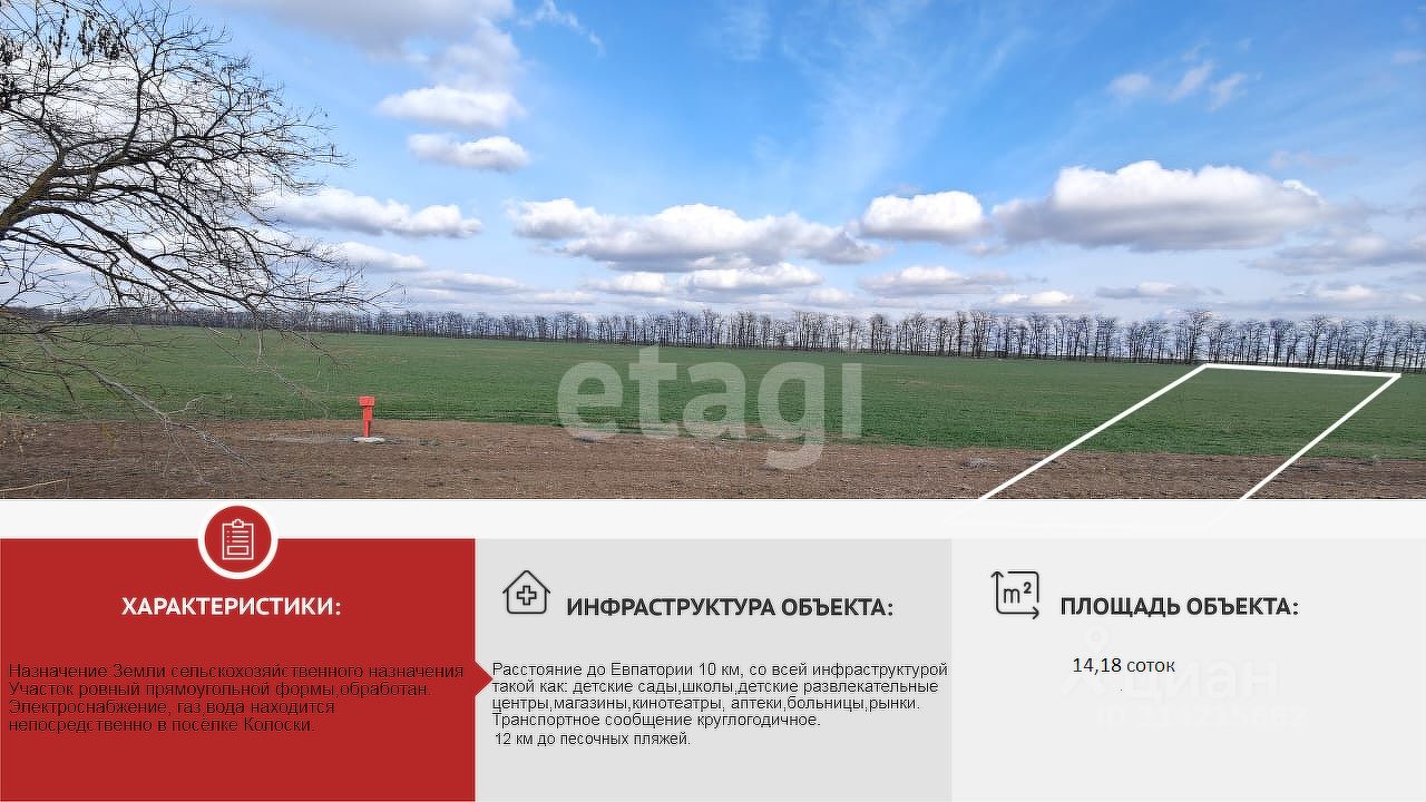 Продаётся участок 14,18 соток рядом с.Колоски , черноморское направление.