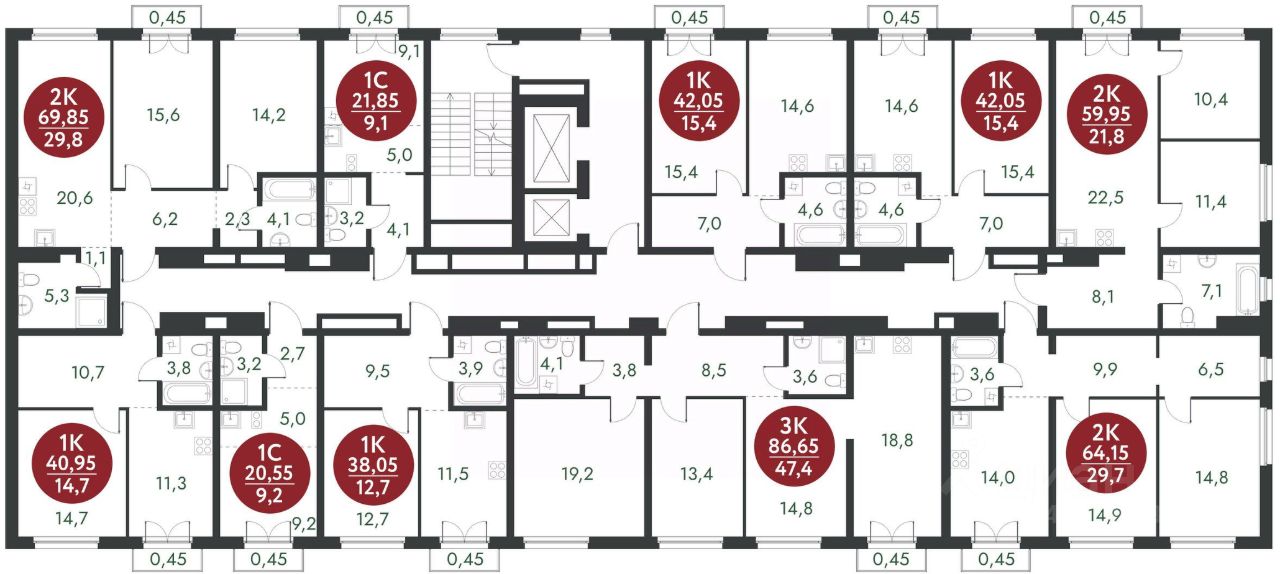 Жилая площадь29,8 м2