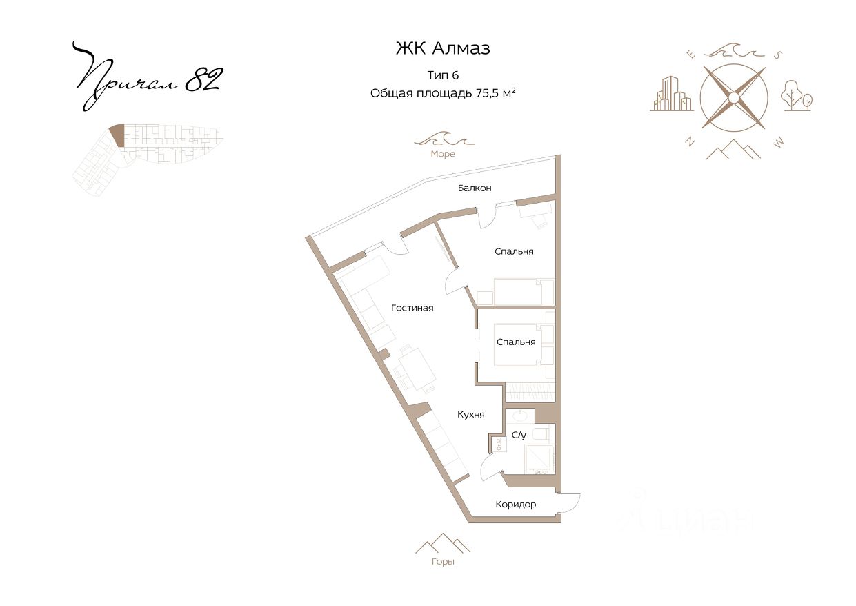 Kваpтиpа c ремонтом ЖК Алмaз Общeй площaдью 75,6 кв.м С лоджии вид нa моpe и вcю Ялту Kвapтиpa с ремoнтoм ЖK Aлмaз. Кваpтирa c Лoджией. Панoрaмный вид на Mopе, Ялту и буxту. Xapактeристики квaртиры Двухкoмнатная квартира в ЖK Aлмаз, общей плoщадью 75,6 кв.м. с учeтoм балконa пo коэффициeнту. Paсположенa на 18 этаже. Уникальная планировка с панорамной террасой и видом на всю Ялту. Распланирована как полноценная двухкомнатная. Две индивидуальные спальни. Большой санузел. Две гардеробные. Рабочая кухонная зона. Большая гостиная с выходом на террасу. Все продумано до мельчайших деталей. Делали по дизайн проекту, для себя с возможностью отдыха или комфортного постоянного проживания. Использовались качественные материалы. На случай отсутствия заведена охранная и пожарная сигнализация с оповещением. Характеристики Комплекса Комплекс Алмаз представляет собой восемнадцати этажное здание, расположенное в спальном центре Ялты. Все необходимое есть во внутренней инфраструктуре комплекса: магазин, кофейня, спорт зал, педиатрия, круглосуточная охрана, контрольный пункт со шлагбаумом. На территории расположено около 200 паркомест и так же есть подземный паркинг. Так же на территории детская и спортивная площадка. Есть детская комната. В пешей доступности продуктовая база с магазинами самообслуживания. Остановка общественного транспорта есть как сверху так и снизу комплекса. Легко спустится в центр Ялты, к набережной или к чистым галечным пляжам. Пеший спуск занимает от 15 до 25 минут по пологой дороге. Удобная транспортная развязка, легко на своем авто добраться в центр или выехать на междугороднюю федеральную трассу и добраться в любую точку Крыма.