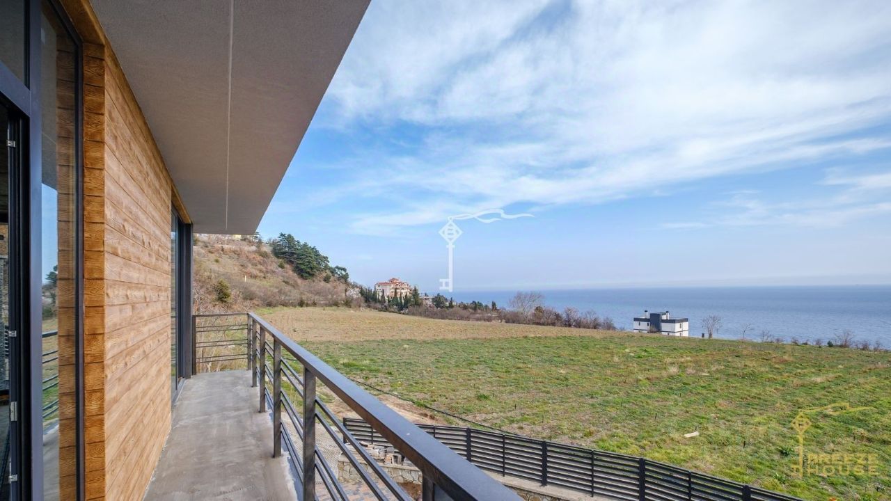 Продажа двухэтажного дома под отделку с панорамным остеклением с видом на море и виноградники, расположенного в тихом, живописном поселке Отрадное вблизи Ялты.