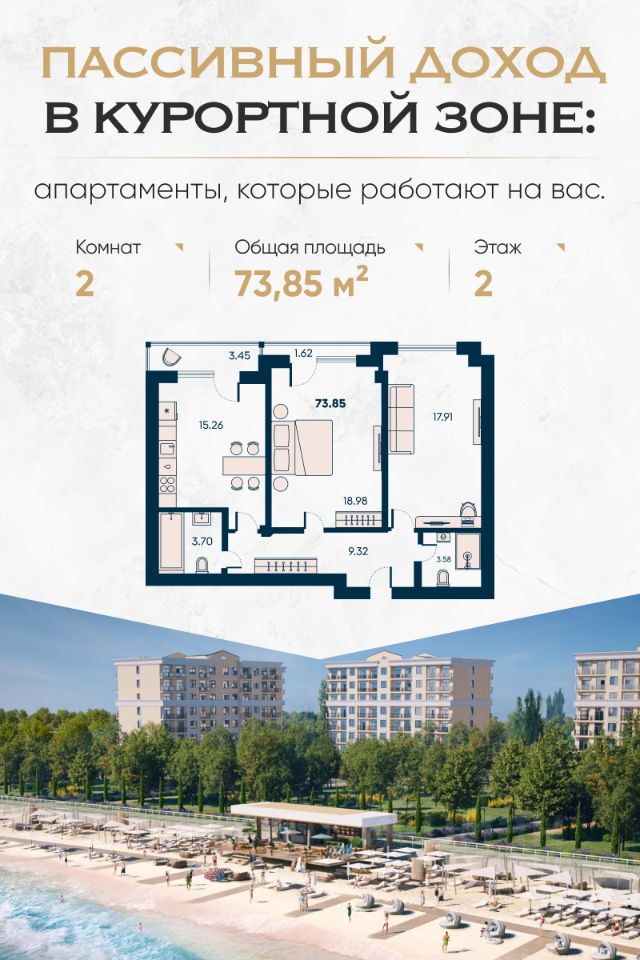 Апартаменты у моря Новая Керкинтида с гарантированной доходностью и рассрочкой. Надёжный способ сохранить капитал и получать пассивный доход — курортная недвижимость на первой линии у моря. Апарт-комплекс в экологически чистом районе Евпатории — это инвестиция, которая работает круглый год. Главные преимущества: Первая береговая линия Гарантированный пассивный доход Возможность отдыха в собственных апартаментах Рассрочка до 90% — без переплат Безопасная сделка через эскроу-счёт Почему это выгодно: Район с высоким спросом на аренду — Евпатория стабильно входит в топ направлений семейного и оздоровительного туризма. Цены на курортную недвижимость в Крыму растут — вы успеваете купить до следующей волны удорожания. Формат ''отдых плюс доход'' — апартаменты можно сдавать через управляющую компанию или использовать самостоятельно. Полностью готовая среда — магазины, кафе, рестораны, прогулочные зоны, ландшафтный парк, двор без машин, спортивные и детские площадки. Вид на море уже с 4 этажа — ощущение курорта не только в инфраструктуре, но и в каждом окне. Для спокойной старости или будущего семьи: Комплекс подойдёт тем, кто хочет иметь надёжный резерв на случай любых сценариев — для себя, детей, внуков или просто как подушку безопасности. Срок сдачи: IV квартал 2026 года. Покупка без скрытых комиссий, с понятной рассрочкой и прозрачными условиями.