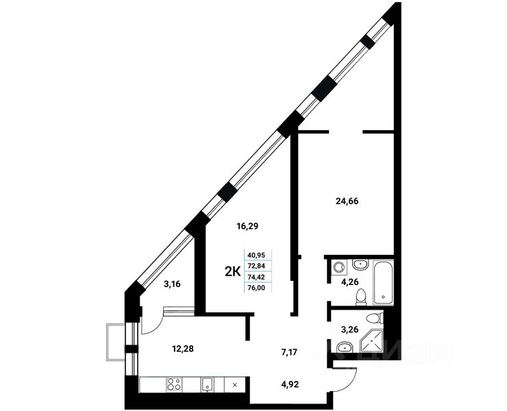 Продаётся 2-комнатная квартира в сданном доме (Чуева, 7 (2 этап) ), срок сдачи: III-кв. 2025, общей площадью 74.42 кв.м., на 1 этаже. Новый жилой комплекс ''Z-town'' от Специализированного застройщика ''Новый Код'' расположен на набережной Чуева в г. Воронеж.