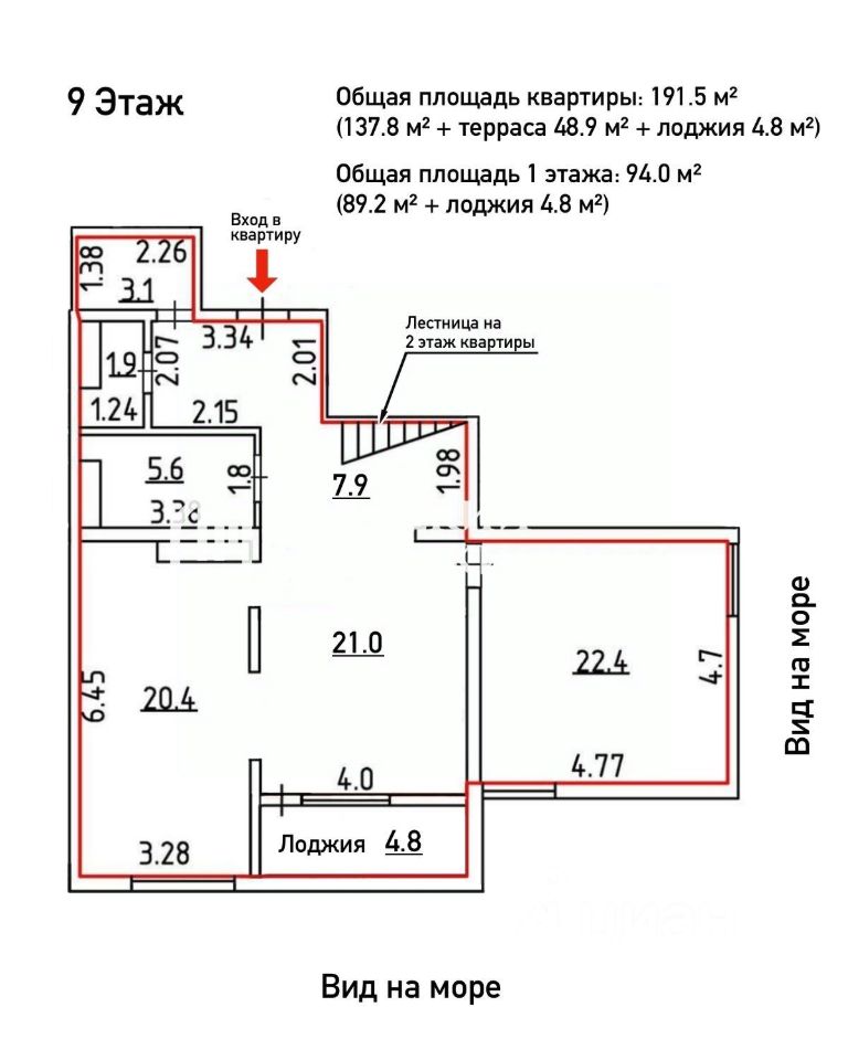 ПРО ПЕНТХАУС: • Фактическая ОБЩАЯ площадь пентхауса: 191,5 м² (137,8 м² + терраса 48,9 м² + лоджия 4,8 м²) • Роскошная угловая ТЕРРАССА с панорамным видом на море (с крышей и с возможностью остекления) — современный тренд и главная изюминка пентхауса • Окна в пентхаусе на восток с шикарным видом на море — ВСЕ РАССВЕТЫ ВАШИ • Три комнаты (каждая более 20 м²) • Просторная кухня-столовая (совет: установите кухню вдоль окна и наслаждайтесь приготовлением любимых блюд с видом на море) • 3 раздельных санузла с возможностью сделать 4 • Большая прихожая и лоджия • УНИКАЛЬНАЯ планировка позволяет организовать в пентхаусе постирочную, сауну, хамам, соляную комнату, гардеробную, кладовую, винную комнату — всё для Вашего комфорта • НЕ ПОСЛЕДНИЙ ЭТАЖ