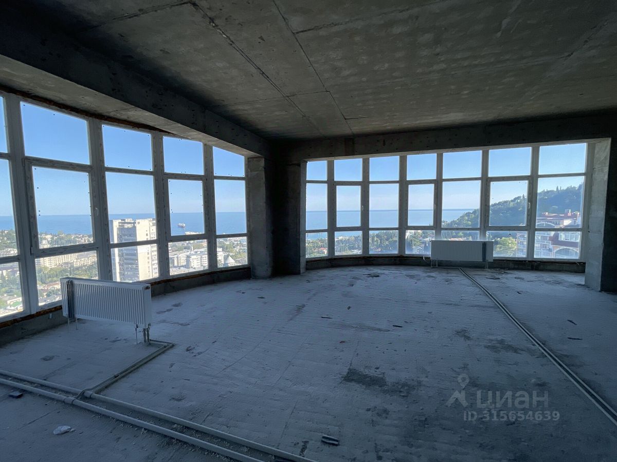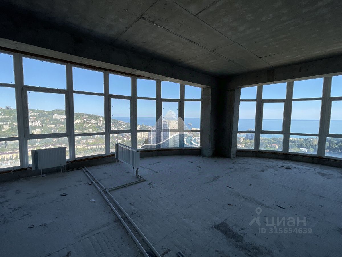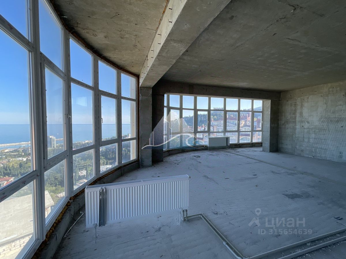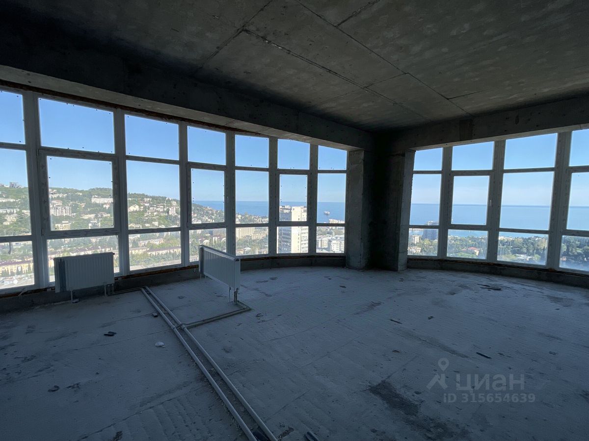 В продаже видовые 3-комнатные апартаменты на бескрайнее море, Ялту и горы, в ЖК ''Жнива'', общей площадью 104 кв.м. Апартаменты находятся на 4 этаже 11 этажного дома с черновой отделкой. Апартаменты свободной планировки позволят Вам воплотить любые Ваши дизайнерские решения. В помещение заведены вода, свет, канализация и отопление. Из окон открывается шикарный вид на море и город. До центральной набережной Ялты 10 минут пешком. 11-этажное здание выстроено по оригинальному проекту и выглядит очень стильно и современно, благодаря большой площади остекления и отделке фасадов, в которой использован натуральный мрамор и гранит. Большинство апартаментов видовые, из окон можно любоваться морем, горами и пышной южной зеленью, которой славится Ялта.
