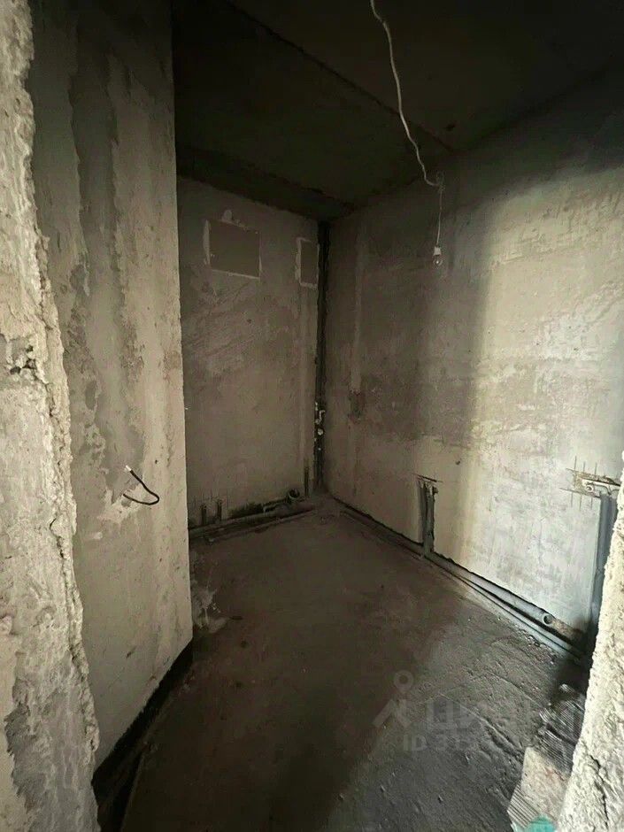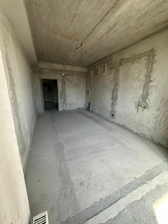 Выполнена черновая отделка: стяжка пола, выровнены стены, сделана разводка электричества, выполнены выводы под кухню, установлены счётчики учёта, установлены радиаторы.