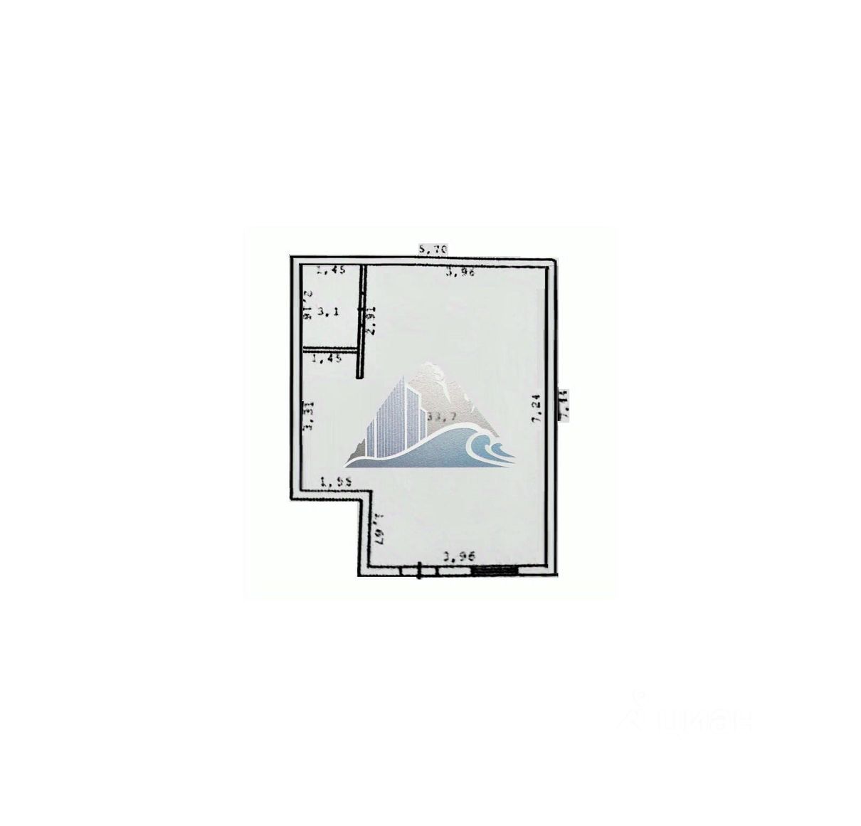 Общей площадью 37 кв.м. Есть ремонт.