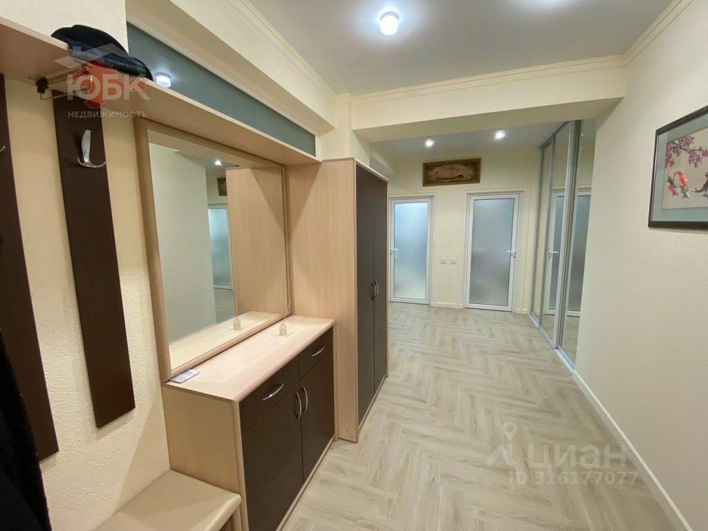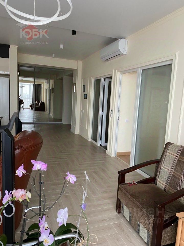 Просторная, светлая, теплая двухкомнатная квартира, перепланированная в студию евро-трешку, находится на пятом этаже, южная сторона с видом во двор и на море, 12-ти этажного каркасно-монолитного двух-подъездного жилого дома клубного типа, 2012 года постройки с закрытой охраняемой благоустроенной территорией, по адресу: г. Евпатория, ул. Интернациональная, 130. Дом расположен в современном деловом центре города Евпатория. (Район ''Универсам''). В шаговой доступности: рынок, торговый центр, ТЦ ''ПУД'', ТЦ ''О'Фреш'', ТЦ ''Эльдорадо'', школа 16, строится детсад, парк ''Красная горка'', озеро Мойнаки. В ухоженном озелененном подъезде два лифта, на входе установлен домофон с управлением через мобильный телефон. На каждом этаже балкон общего пользования. Общая площадь квартиры: согласно выписки ЕГРН: 90,90 кв.м., по техпаспорту: 94,90 кв.м.. В квартире свободной планировки (после строителей) никто не жил, в 2021 году впервые начаты и в 2022 году завершены работы по отделке и оборудованию квартиры современными качественными отделочными материалами, выполнена перепланировка, в результате чего фактическая площадь квартиры составила: 103 кв.м, в том числе: прихожая 15,7 кв.м, гостиная кухня 45,37 кв.м, мастер-спальня 14,68 кв.м, гостевая спальня-кабинет 14,33 кв.м, ванная комната 7,7 кв.м, туалет 3,35 кв.м, техническое помещение (котельная) 1,93 кв.м. Высота потолков 3,7 м. Наружное витражное остекление (''французский балкон''), выполнено пяти-камерным металлопластиковым профилем, двухкамерным стеклопакетом с мультифункциональным напылением на наружном стекле, в гостиной-кухне (6,2 м х 2,56 м) и в мастер-спальне (1,77 м х 2,25 м), что обеспечивает великолепный вид из гостиной и спальни и прекрасную инсоляцию всей квартиры, надежную теплоизоляцию. Квартира полностью по всему периметру утеплена и звукоизолирована, что обеспечивает комфортное проживание с минимизированными счетами за потребленную электроэнергию, в квартире установлено новое, современное и экономичное оборудование: трехфазное электроснабжение высокой степени надежности и защиты (основной трех-фазный электро-щит на 31 автомата и электро-щит в технической комнате на 2 автомата), современное светодиодное освещение всех помещений, в котельной установлены: трех-фазный электрический водогрейный котел Proterm 12 RT/ 14 RU, UA (Словакия), водонагреватель (бойлер) косвенного нагрева Gorenje 120 л, Словения, система водоподготовки и водоочистки. Отопление квартиры построено на основе системы водяного теплого пола: в прихожей, гостиной-кухне, санузлах, а также на биметаллических радиаторах отопления в мастер-спальне и гостевой спальне (кабинете). Кондиционирование воздуха (обогрев и охлаждение) на основе оборудования TOSOT: 2 сплит системы по 07 в спальнях и кондиционер на 18 в гостиной-кухне, принудительная вентиляция в санузлах и кухне. Гостиная-кухня оборудована индивидуально изготовленной встроенной модульной кухней Rehau, (31 шкафа, оборудованных подъемными механизмами Blum и выдвижными механизма