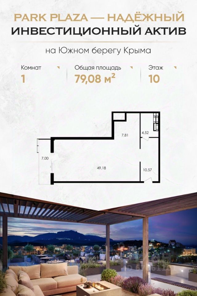 Комплекс Park Plaza расположен в престижном районе Алушты — в Приморском парке, в 150 метрах от пляжа. Это современный клубный дом с закрытой территорией, продуманной инфраструктурой и высоким уровнем сервиса. Преимущества для инвестора Доходность от 30% годовых Собственная сервисная компания: сдача в аренду, клининг, трансферы, управление объектом Формат ''купил — и получаешь доход'': никакой рутины 100% апартаментов с видами на море, парк или горы Беспроцентная рассрочка до сдачи (4 квартал 2025 г.) ФЗ-214, эскроу-счета — безопасность сделки гарантирована Что внутри — Панорамные окна, высокие потолки, балконы и террасы — Гибкие планировки: от однокомнатных до просторных трёхкомнатных и юнитов под деление — Предчистовая отделка: вы сами выбираете стиль интерьера Инфраструктура комплекса — Подземный паркинг с лифтом — Панорамная терраса 1000 м² с лаундж-зонами, SPA, джакузи, йогой и летним кинотеатром — Тренажёрный зал, ресторан, детская игровая, химчистка — Безопасность 24/7, видеонаблюдение, электронные ключи Локация — центр курортной жизни — Приморский парк — 10 метров — Море и пляжи — 150 метров — Набережная и рестораны — 3 минуты пешком — Спортивный центр сборных команд РФ — 200 метров — До Ялты — 30 минут, до Крымского моста — 3,5 часа Почему выбирают Park Plaza: — Умеренная конкуренция — ограниченное предложение премиального сегмента в Алуште — Локация работает на вас — туристический спрос растёт ежегодно — Можно совмещать личный отдых и аренду — all inclusive-сервис это позволяет — Рассрочка до конца строительства — без банков и процентов Успейте купить до роста цен — первый этап продаж уже стартовал. Оставьте заявку — отправим вам: Портфель с планировками и ценами Инвестиционный расчёт с окупаемостью Презентацию с визуализациями и ответами на частые вопросы Park Plaza — место, где отдых превращается в доход. Для жизни. Для пенсии. Для капитала.