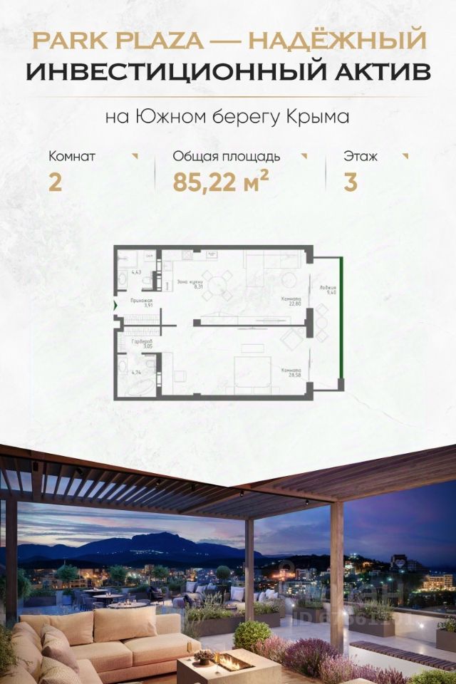 Комплекс Park Plaza расположен в престижном районе Алушты — в Приморском парке, в 150 метрах от пляжа. Это современный клубный дом с закрытой территорией, продуманной инфраструктурой и высоким уровнем сервиса. Преимущества для инвестора Доходность от 30% годовых Собственная сервисная компания: сдача в аренду, клининг, трансферы, управление объектом Формат ''купил — и получаешь доход'': никакой рутины 100% апартаментов с видами на море, парк или горы Беспроцентная рассрочка до сдачи (4 квартал 2025 г.) ФЗ-214, эскроу-счета — безопасность сделки гарантирована Что внутри — Панорамные окна, высокие потолки, балконы и террасы — Гибкие планировки: от однокомнатных до просторных трёхкомнатных и юнитов под деление — Предчистовая отделка: вы сами выбираете стиль интерьера Инфраструктура комплекса — Подземный паркинг с лифтом — Панорамная терраса 1000 м² с лаундж-зонами, SPA, джакузи, йогой и летним кинотеатром — Тренажёрный зал, ресторан, детская игровая, химчистка — Безопасность 24/7, видеонаблюдение, электронные ключи Локация — центр курортной жизни — Приморский парк — 10 метров — Море и пляжи — 150 метров — Набережная и рестораны — 3 минуты пешком — Спортивный центр сборных команд РФ — 200 метров — До Ялты — 30 минут, до Крымского моста — 3,5 часа Почему выбирают Park Plaza: — Умеренная конкуренция — ограниченное предложение премиального сегмента в Алуште — Локация работает на вас — туристический спрос растёт ежегодно — Можно совмещать личный отдых и аренду — all inclusive-сервис это позволяет — Рассрочка до конца строительства — без банков и процентов Успейте купить до роста цен — первый этап продаж уже стартовал. Оставьте заявку — отправим вам: Портфель с планировками и ценами Инвестиционный расчёт с окупаемостью Презентацию с визуализациями и ответами на частые вопросы Park Plaza — место, где отдых превращается в доход. Для жизни. Для пенсии. Для капитала.