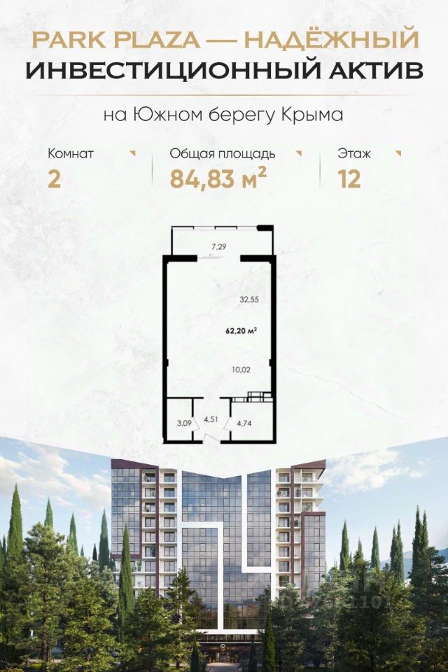 Комплекс Park Plaza расположен в престижном районе Алушты — в Приморском парке, в 150 метрах от пляжа. Это современный клубный дом с закрытой территорией, продуманной инфраструктурой и высоким уровнем сервиса. Преимущества для инвестора Доходность от 30% годовых Собственная сервисная компания: сдача в аренду, клининг, трансферы, управление объектом Формат ''купил — и получаешь доход'': никакой рутины 100% апартаментов с видами на море, парк или горы Беспроцентная рассрочка до сдачи (4 квартал 2025 г.) ФЗ-214, эскроу-счета — безопасность сделки гарантирована Что внутри — Панорамные окна, высокие потолки, балконы и террасы — Гибкие планировки: от однокомнатных до просторных трёхкомнатных и юнитов под деление — Предчистовая отделка: вы сами выбираете стиль интерьера Инфраструктура комплекса — Подземный паркинг с лифтом — Панорамная терраса 1000 м² с лаундж-зонами, SPA, джакузи, йогой и летним кинотеатром — Тренажёрный зал, ресторан, детская игровая, химчистка — Безопасность 24/7, видеонаблюдение, электронные ключи Локация — центр курортной жизни — Приморский парк — 10 метров — Море и пляжи — 150 метров — Набережная и рестораны — 3 минуты пешком — Спортивный центр сборных команд РФ — 200 метров — До Ялты — 30 минут, до Крымского моста — 3,5 часа Почему выбирают Park Plaza: — Умеренная конкуренция — ограниченное предложение премиального сегмента в Алуште — Локация работает на вас — туристический спрос растёт ежегодно — Можно совмещать личный отдых и аренду — all inclusive-сервис это позволяет — Рассрочка до конца строительства — без банков и процентов Успейте купить до роста цен — первый этап продаж уже стартовал. Оставьте заявку — отправим вам: Портфель с планировками и ценами Инвестиционный расчёт с окупаемостью Презентацию с визуализациями и ответами на частые вопросы Park Plaza — место, где отдых превращается в доход. Для жизни. Для пенсии. Для капитала.
