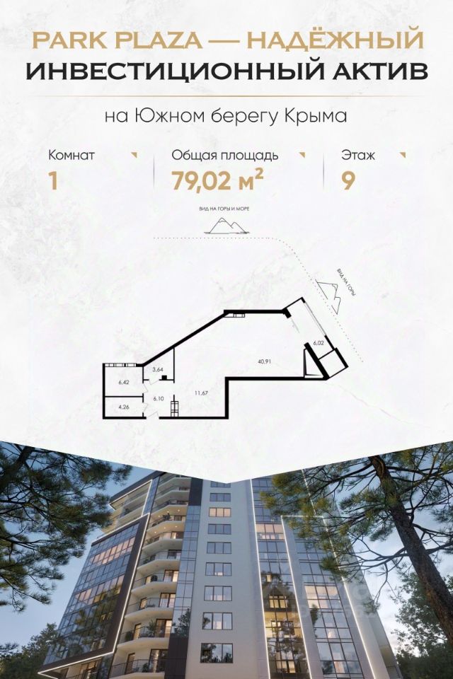 Комплекс Park Plaza расположен в престижном районе Алушты — в Приморском парке, в 150 метрах от пляжа. Это современный клубный дом с закрытой территорией, продуманной инфраструктурой и высоким уровнем сервиса. Преимущества для инвестора Доходность от 30% годовых Собственная сервисная компания: сдача в аренду, клининг, трансферы, управление объектом Формат ''купил — и получаешь доход'': никакой рутины 100% апартаментов с видами на море, парк или горы Беспроцентная рассрочка до сдачи (4 квартал 2025 г.) ФЗ-214, эскроу-счета — безопасность сделки гарантирована Что внутри — Панорамные окна, высокие потолки, балконы и террасы — Гибкие планировки: от однокомнатных до просторных трёхкомнатных и юнитов под деление — Предчистовая отделка: вы сами выбираете стиль интерьера Инфраструктура комплекса — Подземный паркинг с лифтом — Панорамная терраса 1000 м² с лаундж-зонами, SPA, джакузи, йогой и летним кинотеатром — Тренажёрный зал, ресторан, детская игровая, химчистка — Безопасность 24/7, видеонаблюдение, электронные ключи Локация — центр курортной жизни — Приморский парк — 10 метров — Море и пляжи — 150 метров — Набережная и рестораны — 3 минуты пешком — Спортивный центр сборных команд РФ — 200 метров — До Ялты — 30 минут, до Крымского моста — 3,5 часа Почему выбирают Park Plaza: — Умеренная конкуренция — ограниченное предложение премиального сегмента в Алуште — Локация работает на вас — туристический спрос растёт ежегодно — Можно совмещать личный отдых и аренду — all inclusive-сервис это позволяет — Рассрочка до конца строительства — без банков и процентов Успейте купить до роста цен — первый этап продаж уже стартовал. Оставьте заявку — отправим вам: Портфель с планировками и ценами Инвестиционный расчёт с окупаемостью Презентацию с визуализациями и ответами на частые вопросы Park Plaza — место, где отдых превращается в доход. Для жизни. Для пенсии. Для капитала.