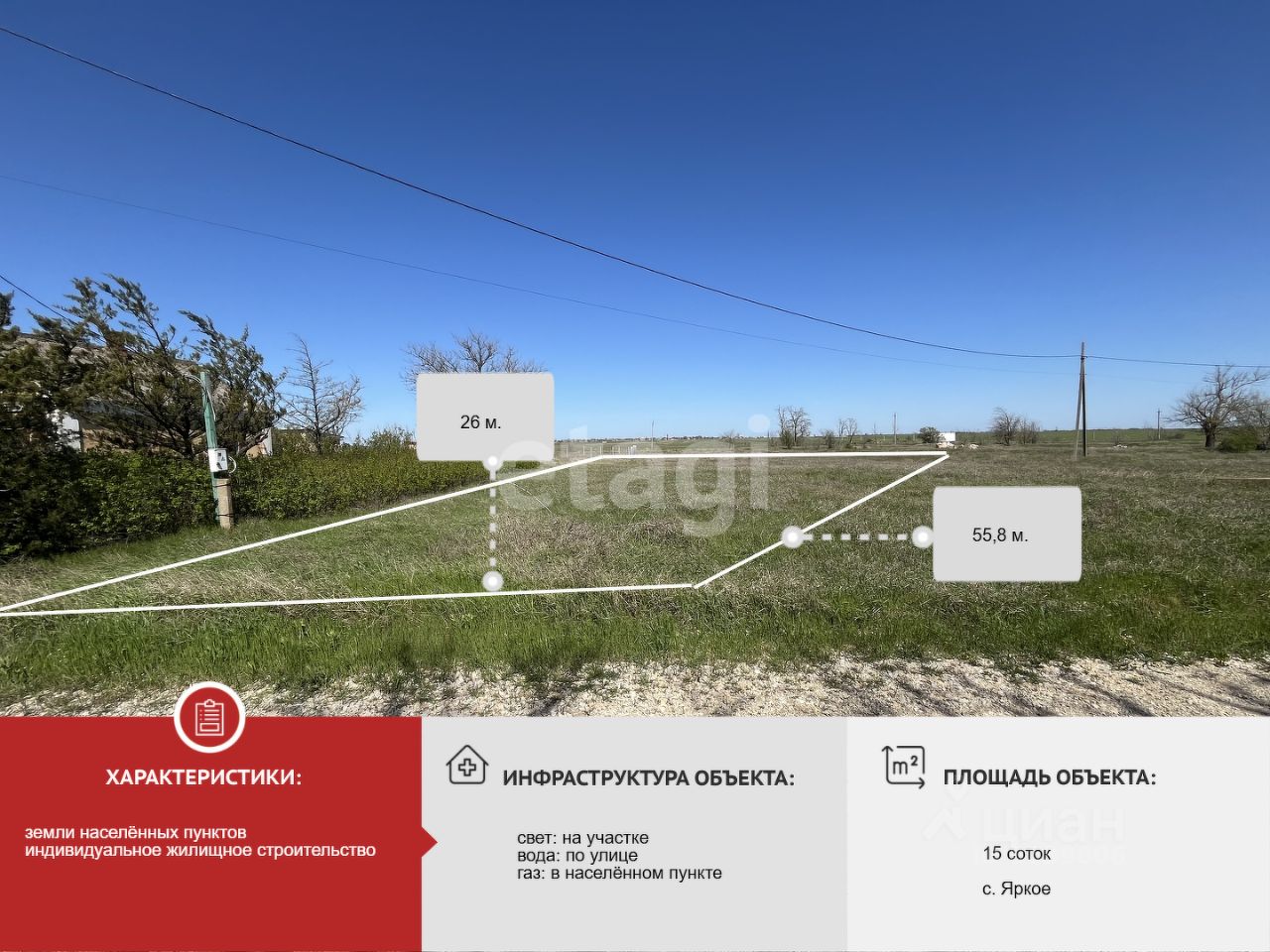 Продам земельный участок площадью 15 соток в селе Яркое, Сакский район, Крым.
