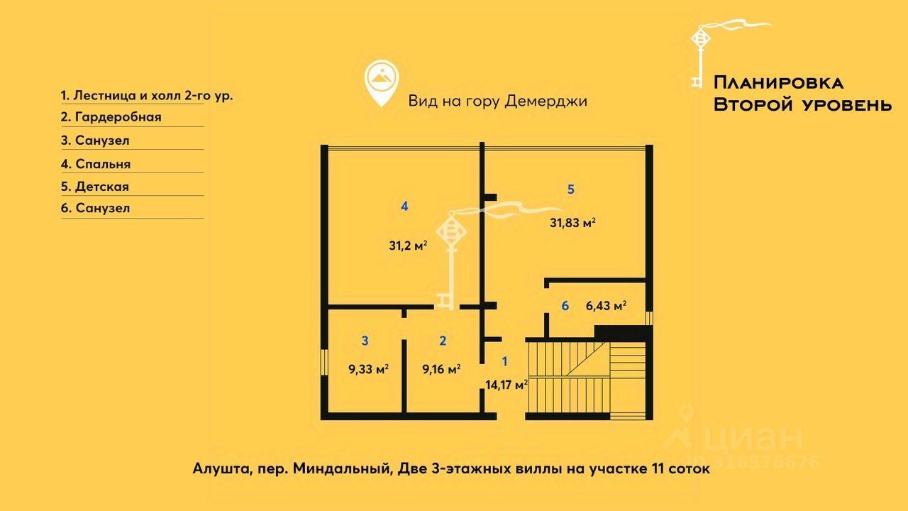 -детская комната со своим санузлом, -мастер-спальня с выходом на видовую террасу, гардеробной и ванной комнатами.