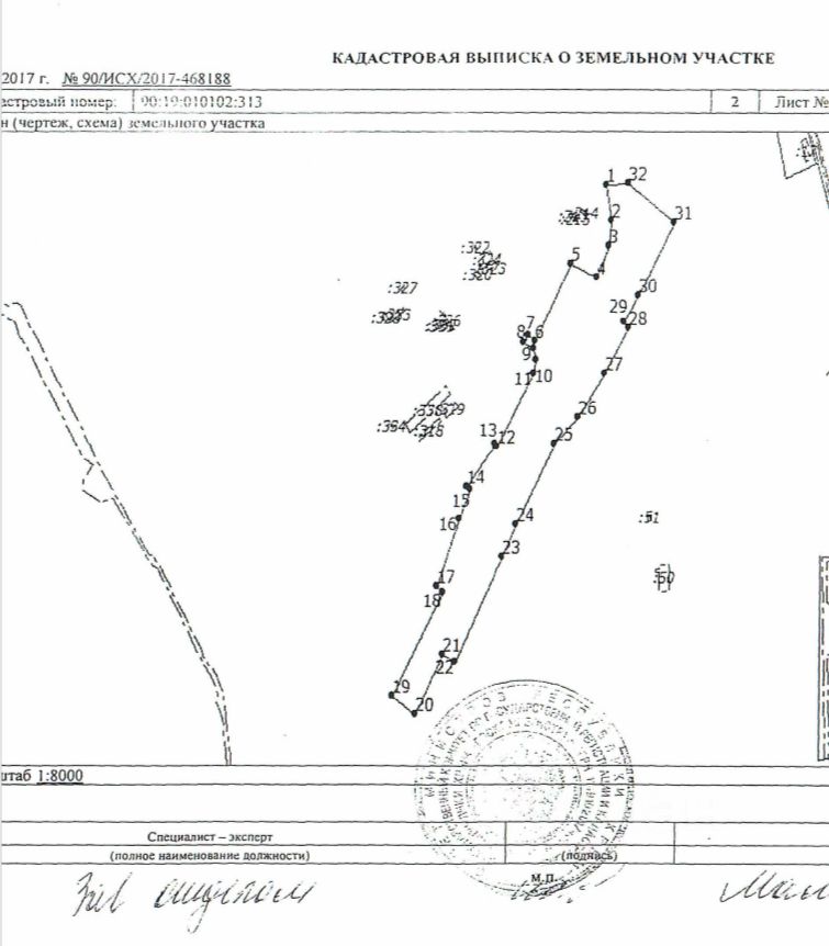 Кадастровый номер: 90:19:010102:313, коммуникации городские все на участке, действующие.
