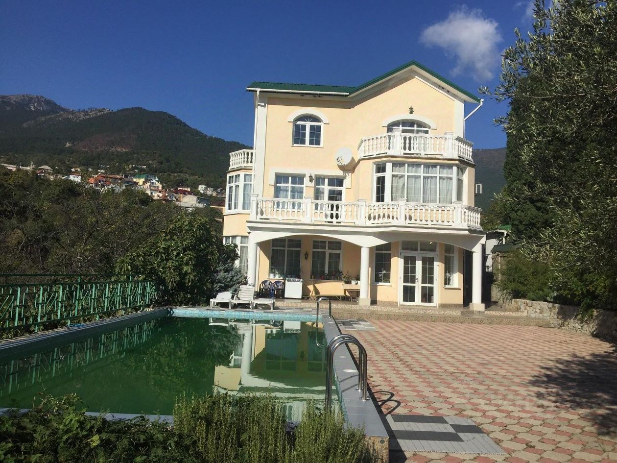 Номер объекта: 1137. Жилой дом с бассейном в Ялте. Трехэтажный жилой дом общей площадью 300 кв.м. На первом этаже дома: гостиная с выходом к бассейну, сан узел, спальня, кухня-столовая. На втором этаже: гардеробная, сан узел, две раздельные спальни с выходом на балконы с местами для отдыха. На третьем этаже: спальня с выходом на балкон с местами для отдыха-с балкона панорамный вид на горную гряду, просторная ванная комната, огромная гостиная с действующим камином и двумя просторными балконами. Земельный участок площадью 10 соток. На участке: плавательный бассейн с зоной загара, беседка с мангалом и местами для отдыха, паркинг на 4 авто, тех. Помещения, фруктовый сад.