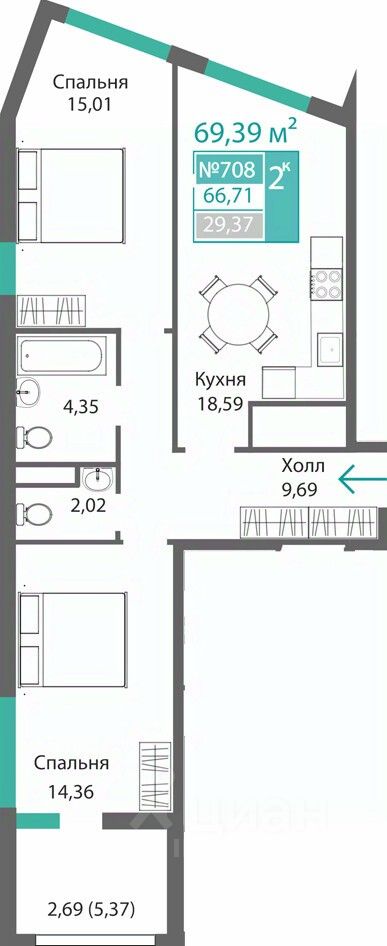Продаётся 2-комнатная квартира в строящемся доме (Этап 1), срок сдачи: I-кв. 2028, общей площадью 66.71 кв.м., на 7 этаже. Новый жилой комплекс от ГК ''Монолит'' по адресу: Республика Крым, Симферополь, улица Святителя Гурия