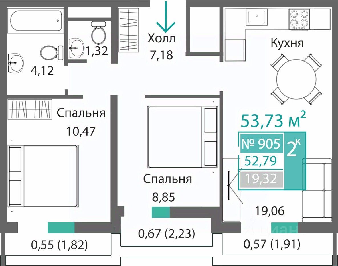 Общая площадь52,79 м2