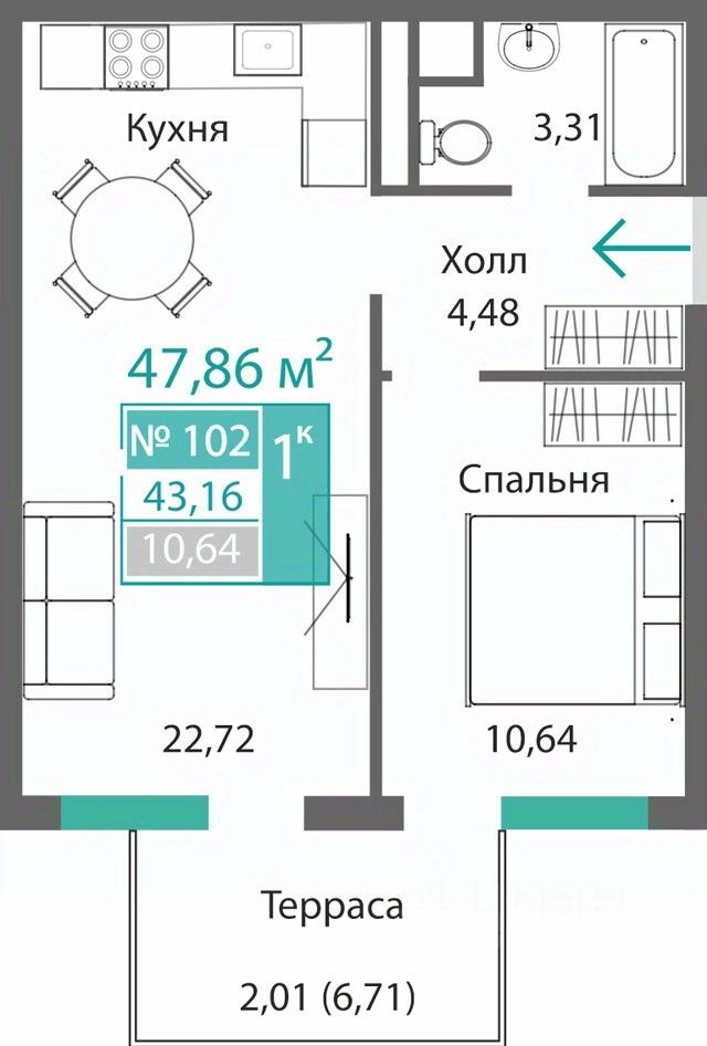 Продаётся 1-комнатная квартира в строящемся доме (Этап 1), срок сдачи: I-кв. 2028, общей площадью 43.16 кв.м., на 1 этаже. Новый жилой комплекс от ГК ''Монолит'' по адресу: Республика Крым, Симферополь, улица Святителя Гурия