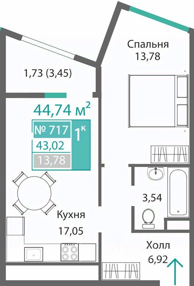 Продаётся 1-комнатная квартира в строящемся доме (Этап 1), срок сдачи: I-кв. 2028, общей площадью 43.02 кв.м., на 7 этаже. Новый жилой комплекс от ГК ''Монолит'' по адресу: Республика Крым, Симферополь, улица Святителя Гурия