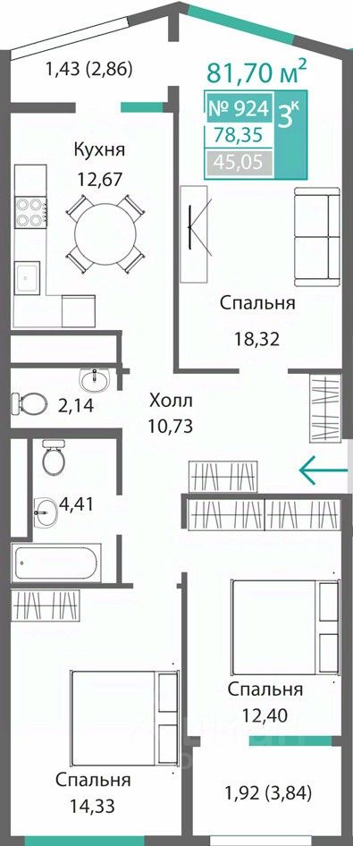 Общая площадь78,35 м2